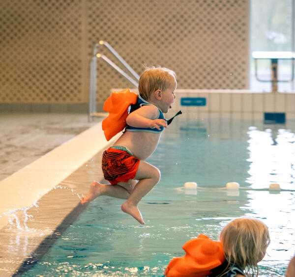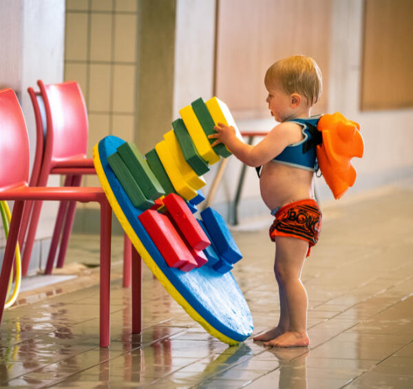 We beginnen in het zwembad, omgetoverd tot waterspeeltuin. Met zwemhulpmiddel Fibby op de rug van jouw kind start jullie avontuur. Terwijl jullie plezier maken, leert jouw kind vanzelf. Van onwennig in het water tot zelfstandig naar de kant klauteren na een sprongetje in het diepe, misschien zelfs al zonder Fibby